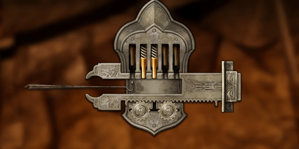 When you lock onto an enemy in a Soulsborne game, this locks the camera and changes how you move. When you interact with something in a Frictional Games game, like Soma or Amnesia, your camera is locked in place and mouse movement translates into physical actions. Both are effectively lock-on states. Sometimes these are integrated into regular gameplay. Other versions take over entirely, such as the lockpicking from Oblivion in the image above. The game’s logical states may still run, so that the player can be spotted picking a lock, or everything pauses to let you fiddle around in your inventory.