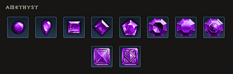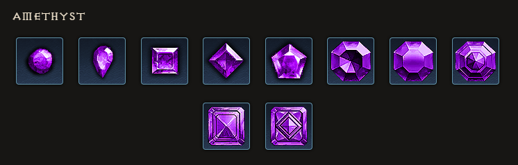 The ten different steps of the Amethyst gem in Diablo III.