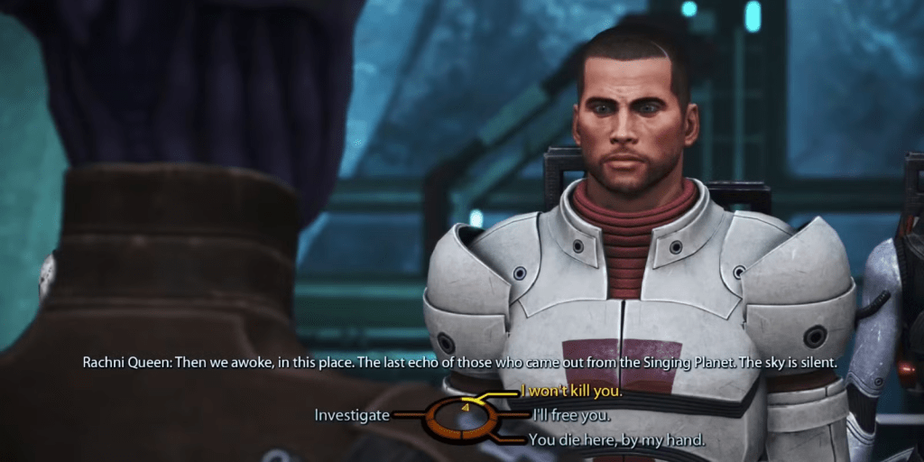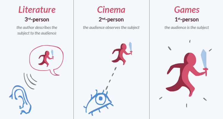 The crux is that this doesn’t work in video games, and the reason is simple: a game cannot control its audience’s intentions or how they feel. Cinematic storytelling works on empathy. This has been discussed before. To afford a player the same level of connection to their character, the only trick that exists is to try to make the player and their avatar occupy the same head space.